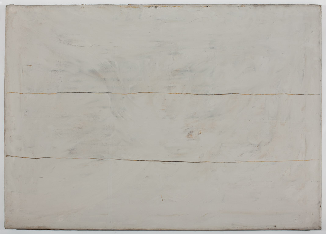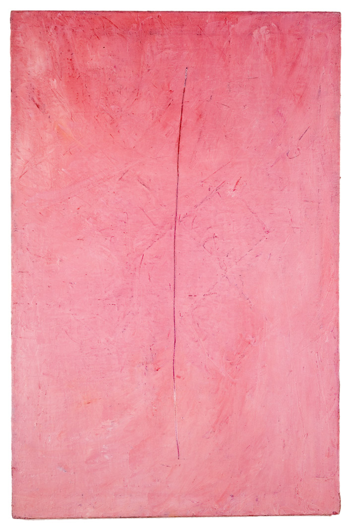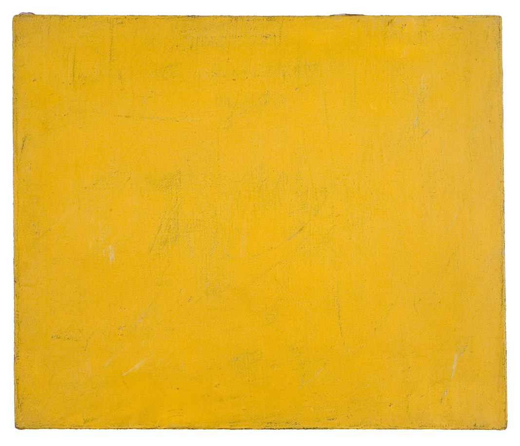 Farben zeigen! Die Wirkungsweise der Farben läßt sich nur vage beschreiben. Ich benutze gern den Begriff „Fluktuation", um das eigentümliche Auftreten der Farben zu kennzeichnen. Dieser Begriff steht dem von Kandinsky gebrauchten der „Vibration" nahe – der heute in den Traktaten zur monochromen Malerei eine große Rolle spielt. „Fluktuation" fängt jene geheimnisvolle Bewegtheit ein, als die Farben erlebt werden: eine ständige Bewegung, ein dauerndes Wechselspiel, so wie es sich in dem Bild des Meeres darstellt. Dieser Vergleich läßt sich fortführen, um eine Einsicht zu umschreiben: in einer Zeitung fand ich eine Fotografie, die eine Uferpromenade zeigte, überschäumt von hohen Brechern; im begleitenden Text war eine Betrachtung darüber angestellt, daß die Kraft des Meeres erst deutlich werde, wenn sich ihm etwas Festes entgegenstelle. Auch die Farben messen ihre Kraft an einem Widerstand: am Widerstand der Formate, in denen sie sich ausbreiten. Die Meinung, Farben zeigten ihre Wirkung nur als Einwirkung auf andere im Bild, sie träten nur in solchem Widerstreit als sie selbst auf, ist durch die monochrome Malerei überholt worden. Dagegen ist die Beziehung zwischen Form und Farbe in den Blick gerückt. Farben brauchen, um sich zu entfalten, bestimmten Raum. Auch das läßt sich am oben aufgeführten Meeresbeispiel verdeutlichen: Im Teich entfaltet sich nicht der Wellenschlag des freien Meeres. Und wie eine vorgeschobene Mole den Wellen unerwartete Kraftentfaltung abzwingt, kann der Maler durch Hindernisse die Farbe auf der Fläche aktivieren. Durch eine Linie zum Beispiel. - Strukturiert man die Farbfläche, so aktiviert man ständig die Farbe. Man kann durch Strukturierung des Grundes eine wenig aktive Farbe über eine Fläche spannen, die sie sonst nicht angemessen füllte. - Es gibt unabsehbar viele Möglichkeiten.